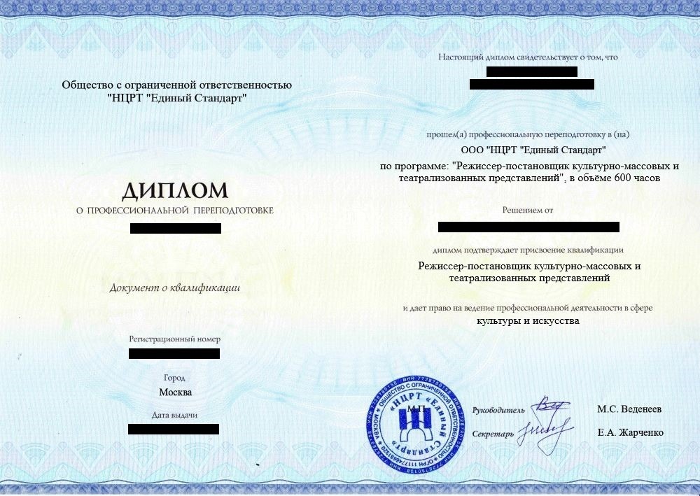 - Диплом о профессиональной переподготовке установленного образца. Срок действия: бессрочно