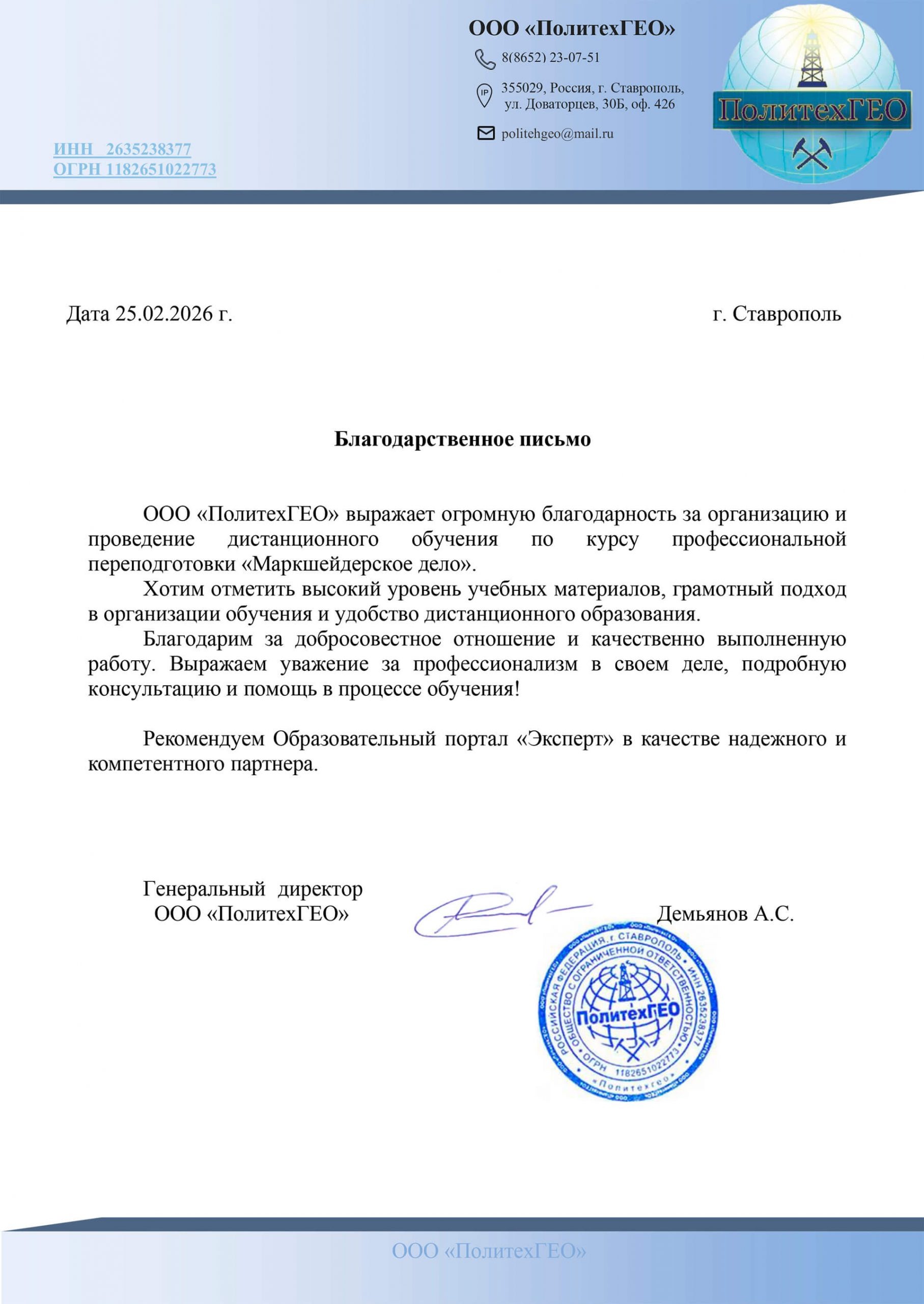 Все благодарственные письма → смотрите на этой странице